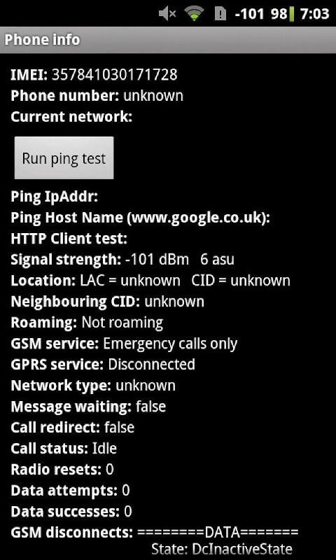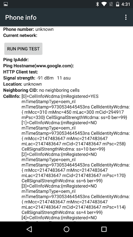 Wireless LAN Test *#*#232339#*#* OR *#*#526#*#*