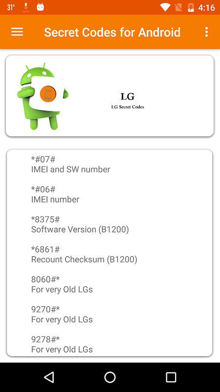 This is a free app which let you know almost all the secret codes regarding android phones.