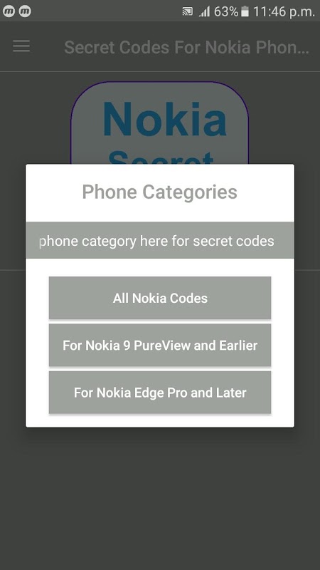 this is the Secret Codes apps there are many android secret code for Nokia Phone