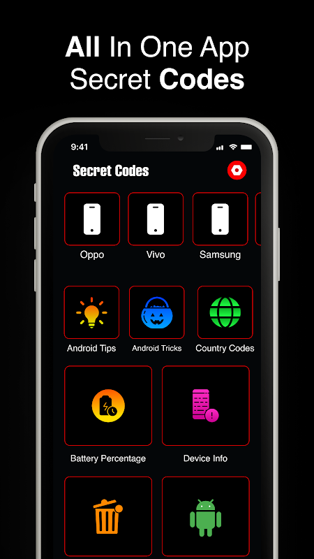 Mobile secret codes for android to unlock the hidden menus in your smartphone. Secret Codes App gives you USSD codes and Hack codes for all the major brands of mobile phones. USSD codes, or "secret codes", are simply codes that are used to unlock hidden features in your smartphone. You can now unlock the hidden portals of your Android phones and can crack the hidden menus by using mobile secret codes tips and tricks.