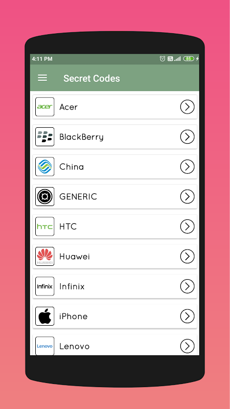 همه برنامه های رمزهای رمزنگاری تلفن همراه شامل کد مخفی تلفن همراه برای همه دستگاه های تلفن همراه مانند سامسونگ ، سونی ، Lenovo ، MI ، موتورولا ، بلک بری ، چین ، HTC ، ال جی ، میکروسافت / ویندوز ، OPPO و هواوی است. در این برنامه ، کدهای مخفی های مختلفی داده شده است که می توانند در دستگاه های تلفن همراه بکار گرفته شوند.