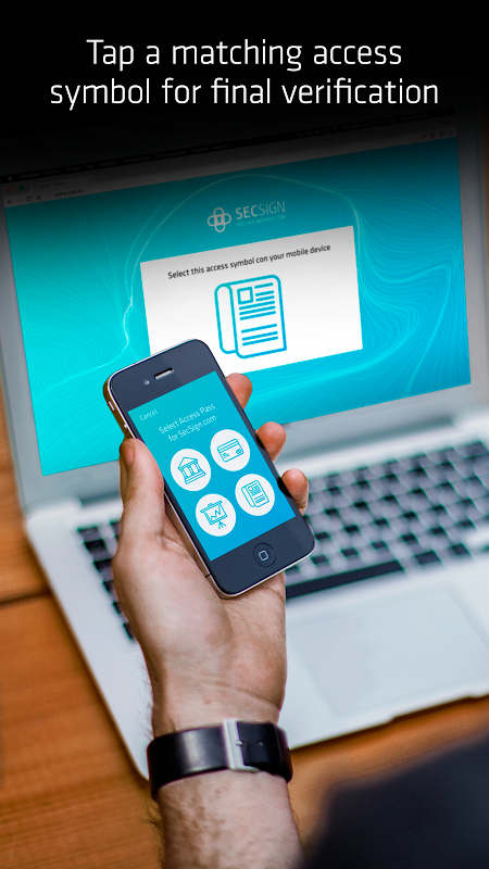 • برای ورود شما فقط نام کاربری خود را (SecSign ID) را وارد کنید و یک نماد دسترسی (بدون ورود محرمانه) اعلام