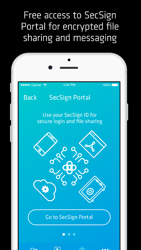 • استفاده از آن با SecSign پورتال برای ذخیره سازی امن فایل، به اشتراک گذاری فایل، و پیام