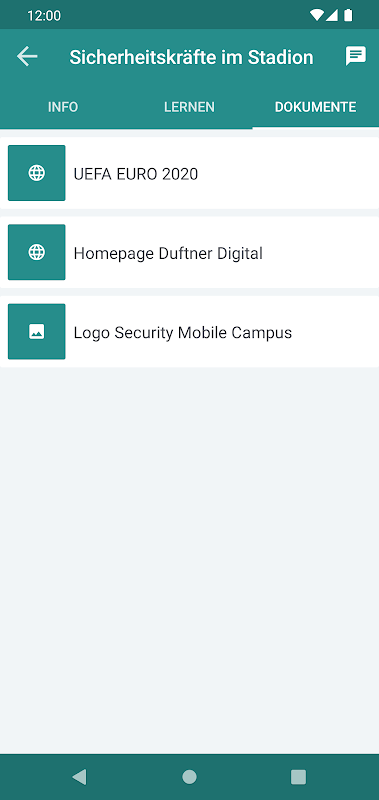 در duftner.digital ، آموزش شرکت باید با لذت همراه باشد. رویکرد بازیگوشی برای یادگیری از طریق امکان مسابقه دوئل اجرا می شود. نیروهای امنیتی خارجی می توانند یکدیگر را در یک دوئل به چالش بکشند. این باعث می شود یادگیری حتی بیشتر سرگرم کننده باشد. حالت بازی زیر امکان پذیر است: در سه دور سوال هر کدام با 3 سوال مشخص می شود که چه کسی سلطان دانش است.