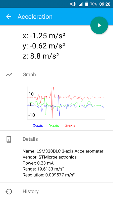 Sensor Sense اطلاعاتی را در مورد تمام سنسورهای پشتیبانی شده توسط تلفن شما نشان می دهد.