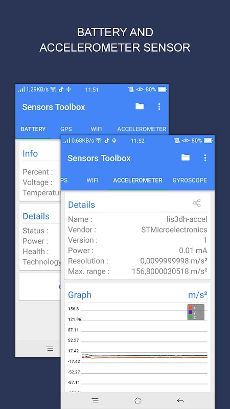 Sensors toolbox is the absolute all-in-one diagnostic tool that lets you know virtually everything about your mobile device status. Get full information about all sensors supported by your tablet, smartphone or wearable device. View in comfortable layout all data from your mobile device sensors in real time, make a sensors tests.