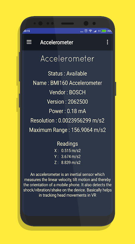 Get accurate data of all the sensors on your phone, all in a small 2MB app.
