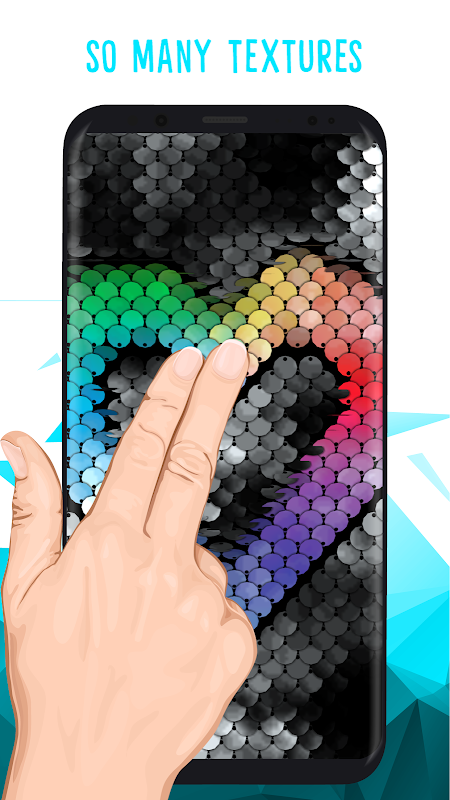 Flip colorful interactive sequins, swipe across your screen to draw shapes, turn it, and enjoy its amazing satisfying colors!