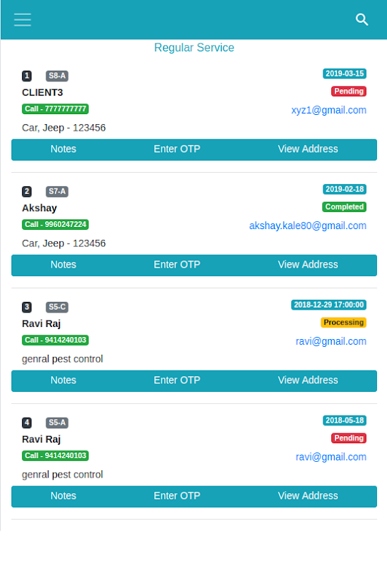 service manage application for service boy or service engg. where service boy can see all assign service .