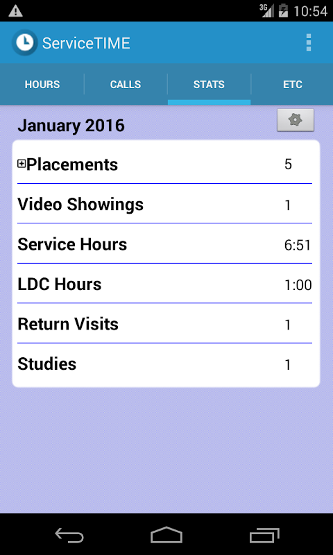 ServiceTIME یک برنامه کاربردی برای کمک به شاهدان یهوه با پیگیری از جنبه های مختلف وزارت درست است.