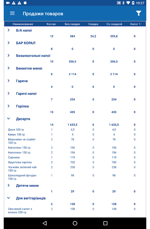 گزارش درآمد، بارگیری محل خدمات و سالنها، تجزیه و تحلیل دقیق در فروش کالاها، میزان درآمد حاصل از فروش کالاها و خدمات؛