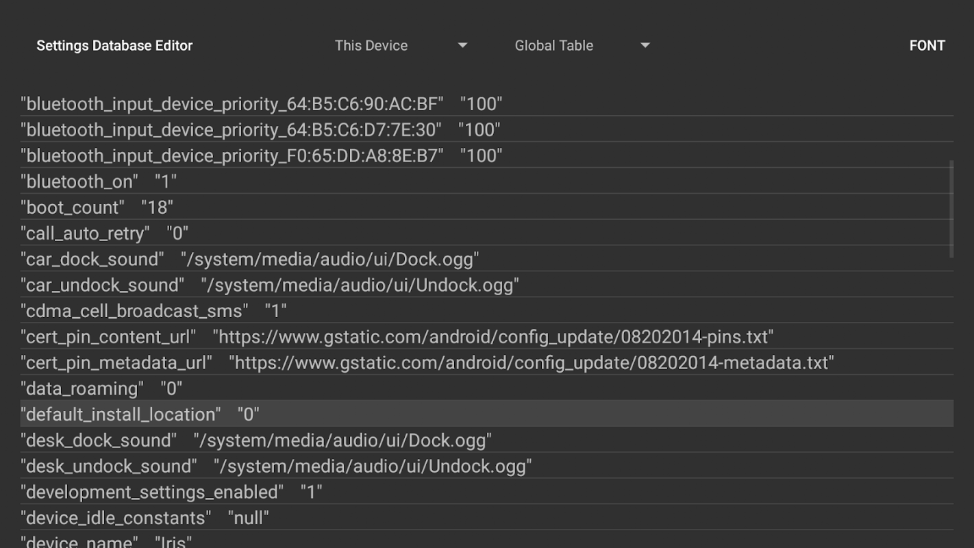برای دسترسی مستقیم به پایگاه داده تنظیمات آندروید