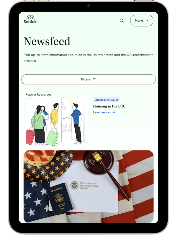 Settle In برای پشتیبانی از تازه واردان در مسیر زندگی در ایالات متحده طراحی شده است. چه به دنبال نکات عملی، اطلاعات قابل اعتماد یا پاسخ به سوالات خود باشید، Settle In هر آنچه را که نیاز دارید در دسترس شما قرار میدهد.