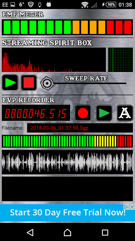 EVP Recorder به شما امکان می دهد جلسه روح خود را ضبط کنید ، یا فقط به تنهایی ضبط کنید.