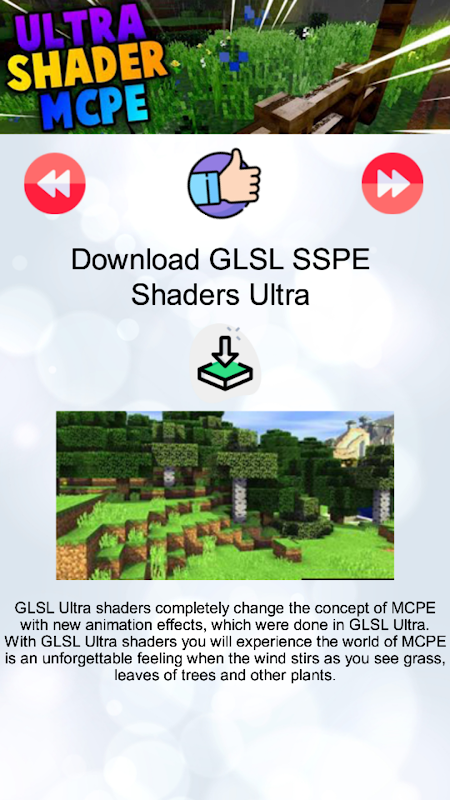 به عنوان یک مثال کوچک ، فوق العاده shader mod برای MCPE یک برنامه سایه بان است که با معرفی یک روش تجسم منحصر به فرد در جهت بهبود روشنایی اساسی و پیش بینی بصری خدمت می کند. سایه بان mcpe 3D رنگ روشن تر را تغییر می دهد و محیط جوی تر است.