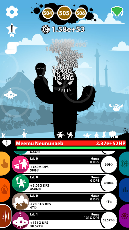Tap to kill monsters, collect coins, recruit mercenaries, invest your goods in abilites and other features for idle income. Try to reach your maximum level in that world, then reborn it and beat your enemies with more powerful forces. You will complete achieves and tasks on this thorny path, and you will be rewarded for it.