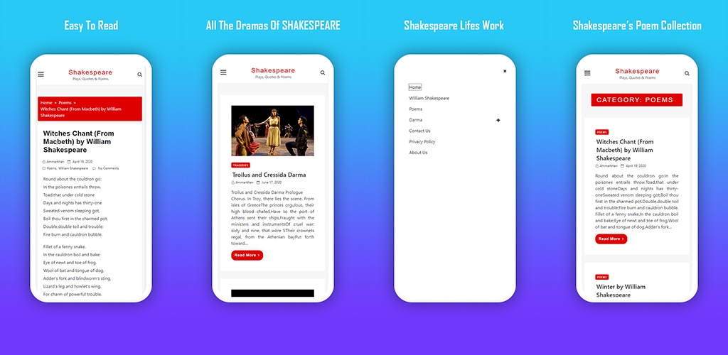 If you are searching for Shakespeare drama in English, this new app is here to help. You will find Shakespeare drama, novels, poems, and comedy writings.