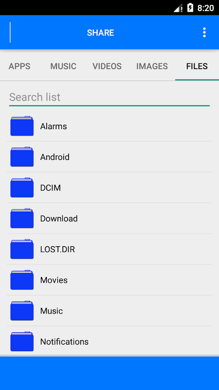 Easily share your music, Images, videos or other files with your friends. You can share multiple files at once.