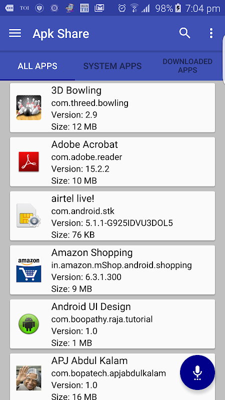 2. For sharing an apk by voice command, please click the mic icon and say:-