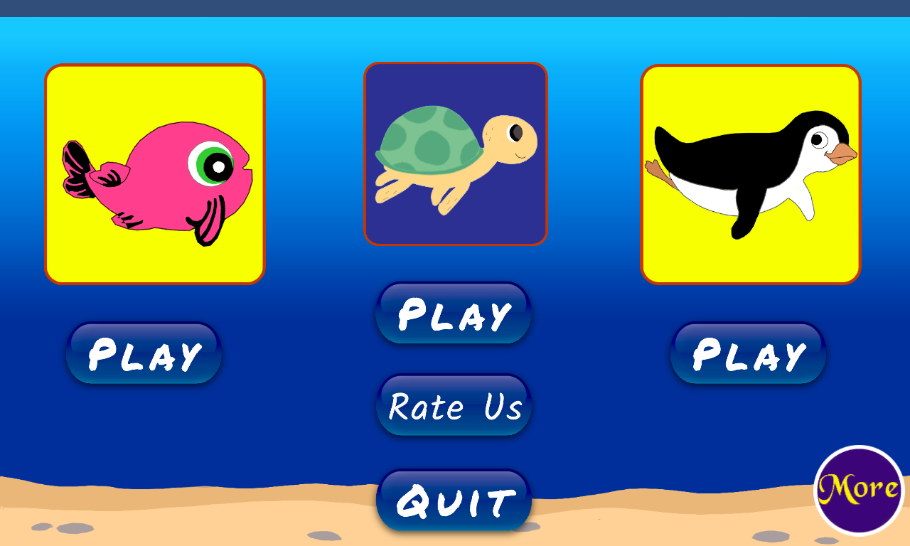 ماهی ، پنگوئن و لاک پشت هستند. پس از انتخاب موجود ، می توانید بازی کوسه را شروع کنید.