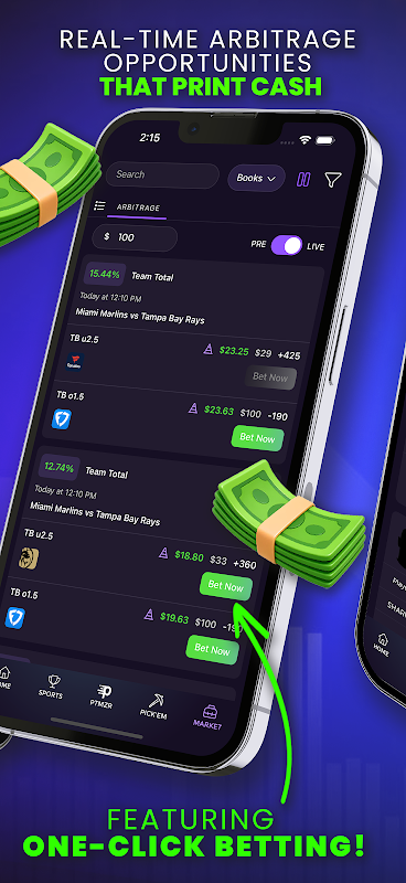 + ابزار آربیتراژ: از فرصت های آربیتراژ قبل از بازی و در بازی برای تضمین سود تضمین شده استفاده کنید.
