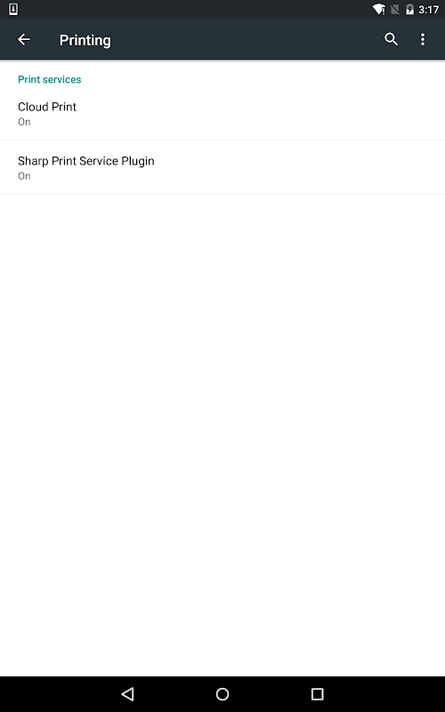 پلاگین Sharp Print Service چاپ اسناد و تصاویر را در دستگاه تلفن همراه Android به یک MFP پشتیبانی شده شارپ امکان پذیر می کند. برای فعال کردن این برنامه، گزینه چاپ را در منوی تنظیمات دستگاه تلفن همراه اندرویدی خود باز کنید، افزونه خدمات چاپ شارپ را انتخاب کنید و سپس کلید را روشن کنید.