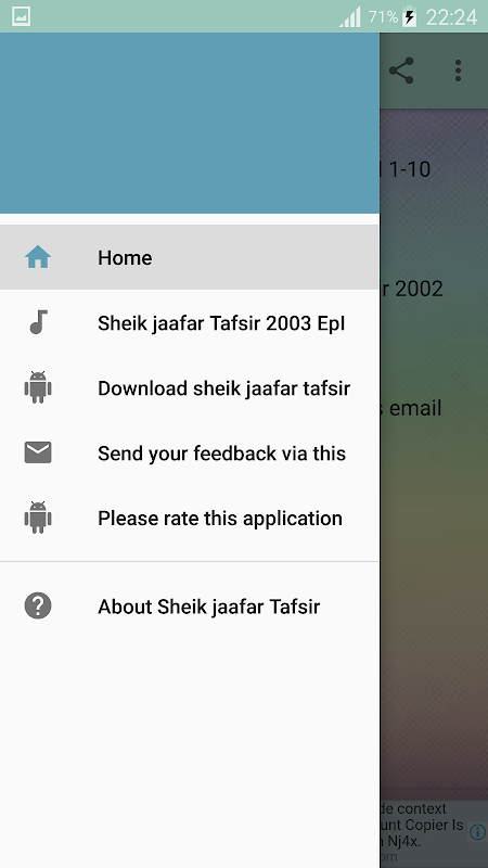 wannan Application mai suna " Sheik Ja'afar complete Tafsir Series 2003 A." yana dauke da tafsir na sheik jaafar mahmud adam wanda yayi a maiduguri a shekarar 2002.