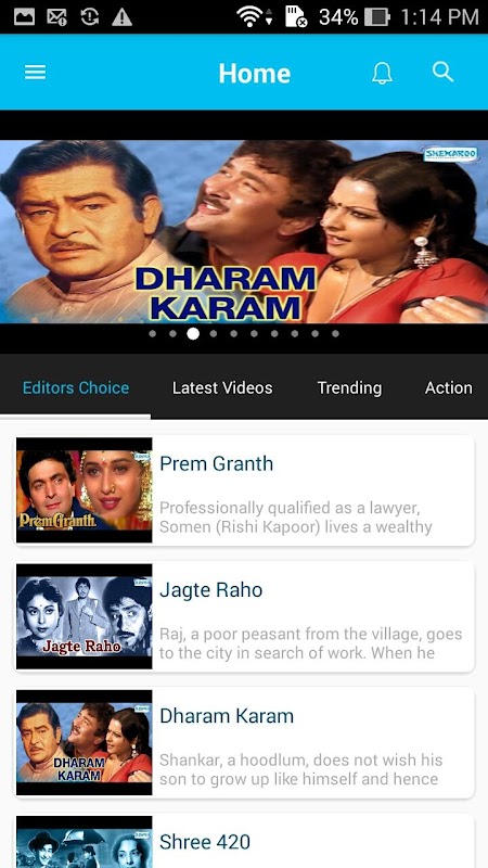 Shemaroo offers vast library of Bollywood movies across genres (romance, action, comedy, thriller, drama, animation,documentaries, biographies, history, mystery etc) to choose from. You can find here releases as latest as 2016 to old hindi films from 60's & 70's.