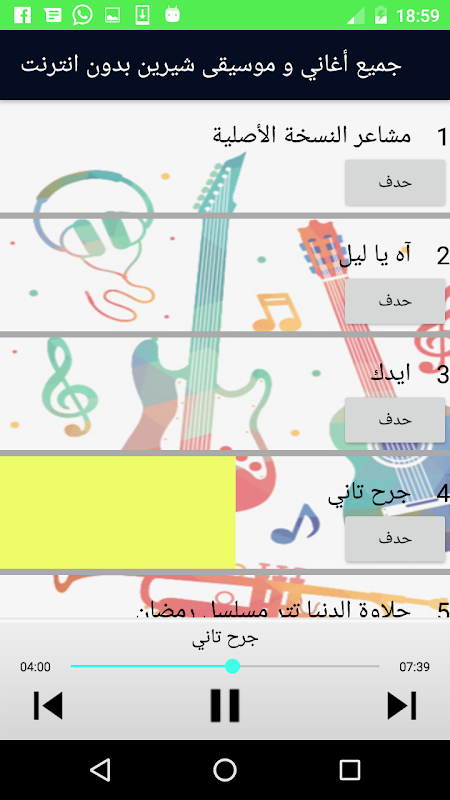 تطبيق رائع يخول لكم الاستماع الى جميع اغاني شيرين عبد الوهاب 2017/2018 مدرجة حسب البومات لتناسب جميع الأذواق: مجموعة مقطوعات شبابية، جديدة و قديمة، موسيقى مسلسلات جميلة و رائعة...