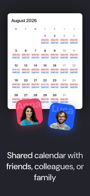 در یک تیم کار میکنید؟ ببینید همکارانتان چه زمانی کار میکنند تا برای استفاده مشترک از خودرو، تعویض شیفت یا سازماندهی دورهمیهای اجتماعی برنامهریزی کنید. مناسب برای بخشهای بیمارستان و تیمهای خردهفروشی.