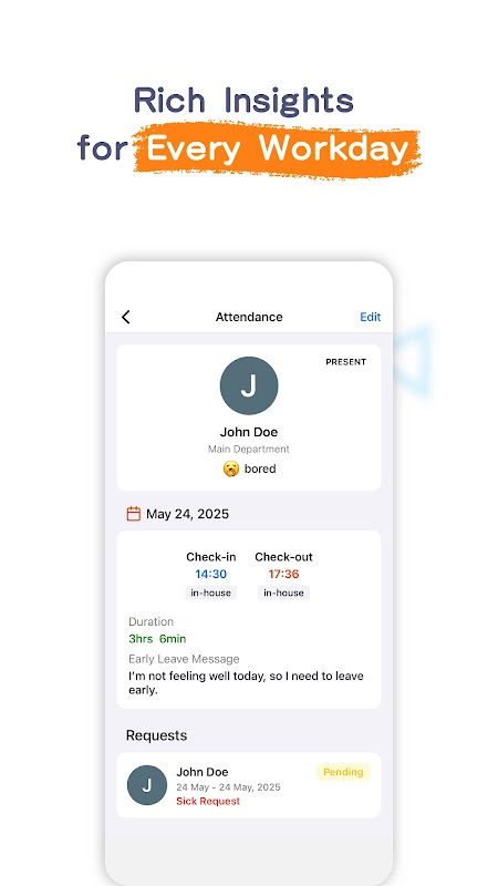 مرخصی سالانه، روزهای مرخصی، روز مرخصی یا سایر انواع مرخصی را به راحتی مدیریت کنید. مدیران میتوانند درخواستها را تأیید، رد یا نظر بدهند، در حالی که کارمندان بازخورد و اعلانهای واضح دریافت میکنند.
