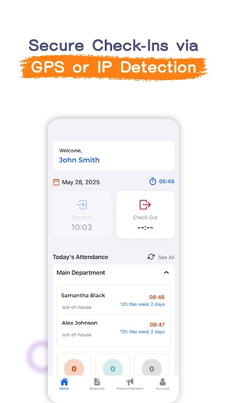 با استفاده از GPS، آدرس IP یا اسکن QR، ورود و خروج های دقیق را ثبت کنید. ShiftFox تضمین میکند که دادههای حضور و غیاب معتبر هستند و با اقدامات دنیای واقعی مرتبط هستند و خطاهای دستی و مشت زدن دوستان را کاهش میدهند.