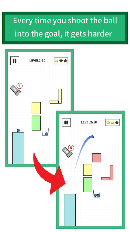 Your job is to aim and shoot ball into the goal. You can get 3 stars if you shoot 3 balls into the goal, Although every time you shoot the ball into the goal it gets harder.
