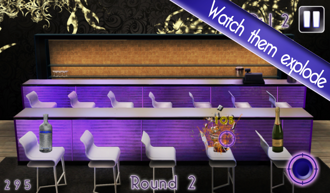Witness the bottles explode over this glamorous bar as you shoot them one by one