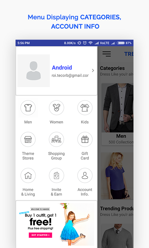 Categories : Our app has several categories like Home,Men, Woman, Kids, Gadget, Beauty and the list goes on