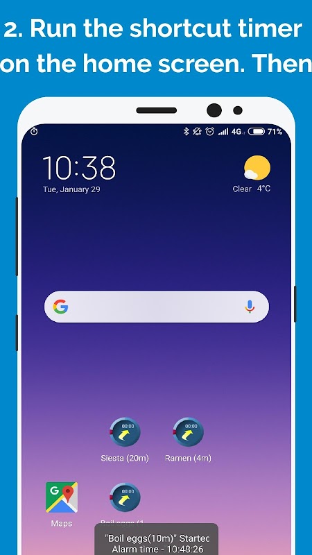 شما می توانید تایمر را با استفاده از میانبر تایمر بر روی صفحه اصلی به طور مستقیم شروع کنید!