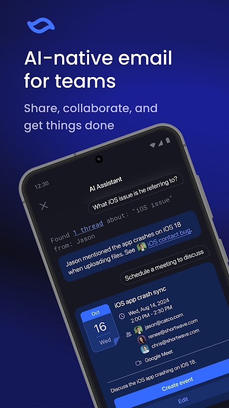 شما و تیمتان میتوانید با استفاده از دستیار هوش مصنوعی قدرتمند Shortwave ایمیل بنویسید، پیشنویسها را بهبود ببخشید، جلسات را برنامهریزی کنید، رشتهها را تجزیه و تحلیل کنید، متن را ترجمه کنید.