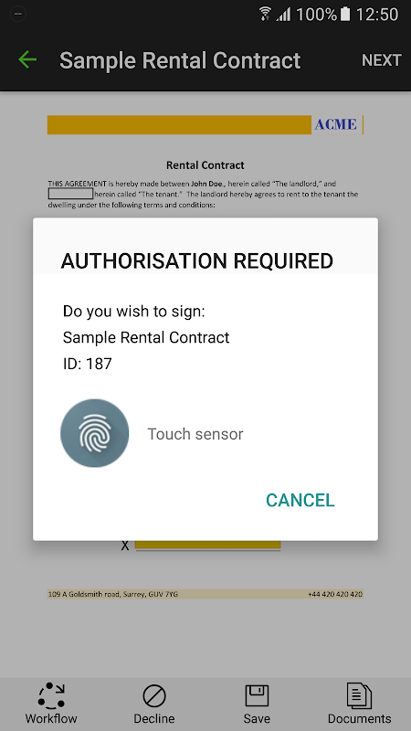SigningHub for Android provides users with the ability to prepare and digitally sign business documents with advanced long-term digital signatures, flexible document workflow and approval and status tracking. SigningHub optimises how businesses deliver, review, approve and sign documents.