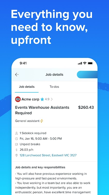 لطفاً توجه داشته باشید ، قبل از دسترسی به مشاغل باید از طرف Sidekicker یا کارفرمای خود دعوت شده باشید.