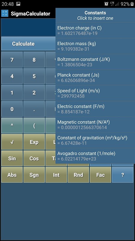 SigmaCalculator ماشین حساب علمی و بیان پیشرفته برای آندروید است.