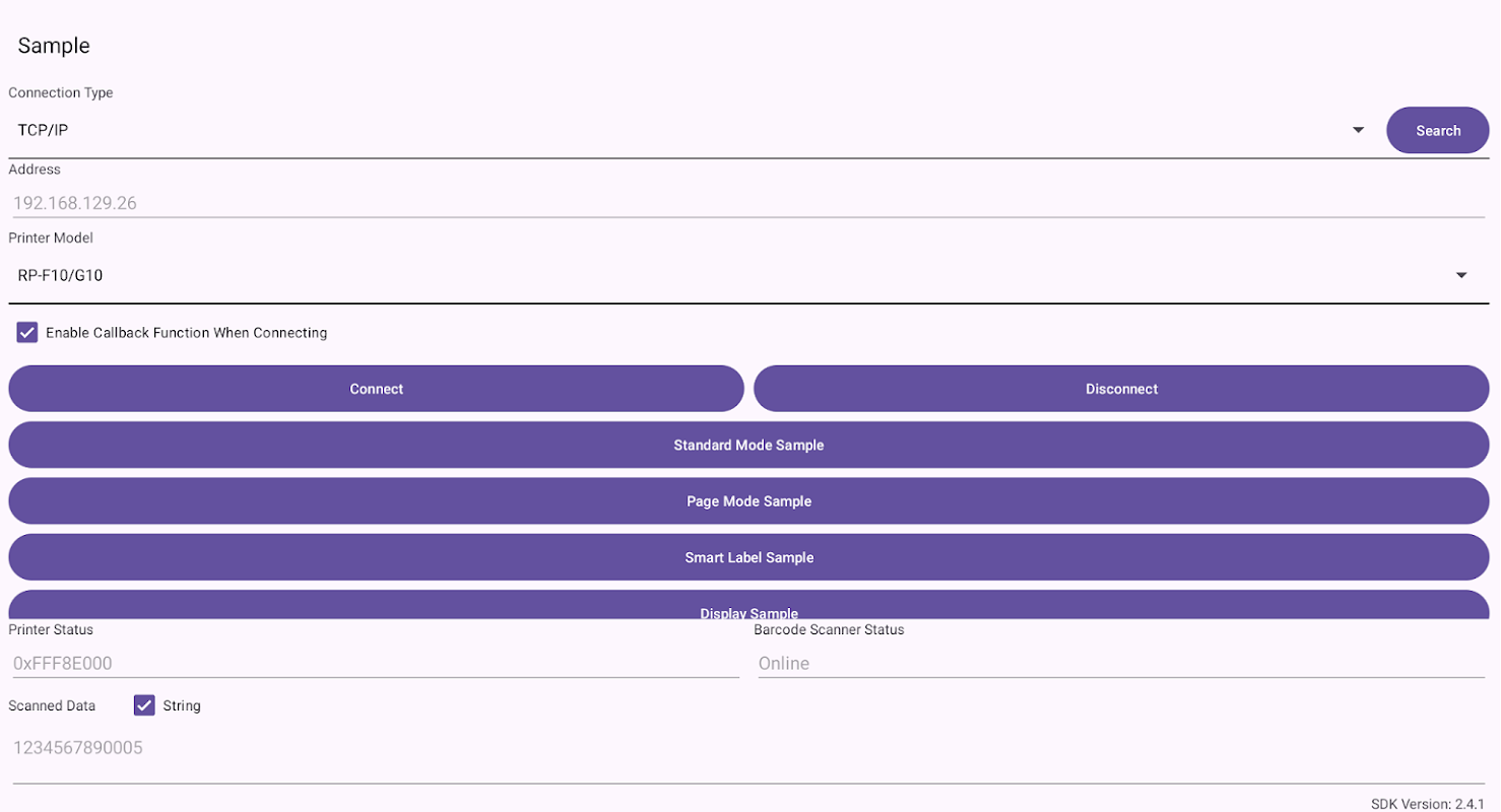 این برنامه به شما امکان می دهد با استفاده از کتابخانه کلاس چاپ ارائه شده توسط SII، متن یا بارکد را در چاپگر Seiko Instruments Inc. (SII) چاپ کنید.