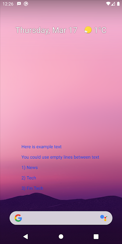 This Silent Reminder shows up the predefined text info on screen top