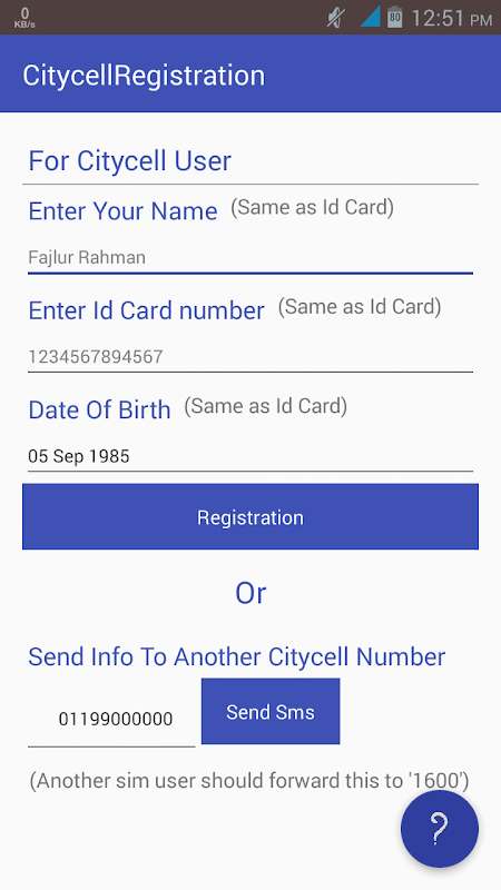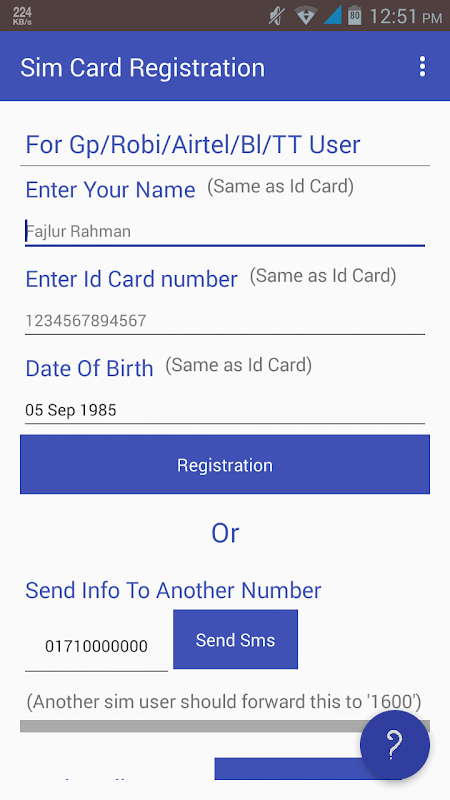 Sim card Registration BD is easy to use ..A help(?) activity is always here to help you ..