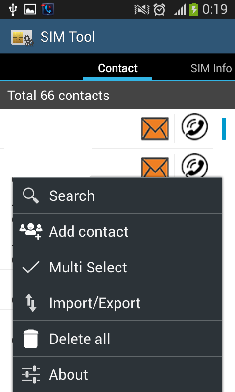 SIM card Toolkit manager application best app in playstore is very easy simple and fast application to view SIM card information for your smart phone that have android system like samsung ,sony , lg and oppo ..... .Import or Export and Delete or Add new smart Phone number. Sent message or make a call from this app android. SIM card Toolkit manager application helps manage the SIM card easily and simple. Facilitate the management of information on the SIM card by manage your contacts for your smart phone . And provides information that is useful. application SIM gives also the ability to manage the SIM card easily. this app is very very important for your smart phone .