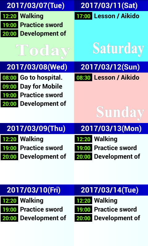 نسخههای قدیمی Simple 8 days schedule viewer.