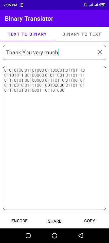 این برنامه متن را به باینری و باینری را به متن ترجمه می کند. ارسال پیام خنده دار یا رمزگذاری شده به یک دوست بسیار مفید است