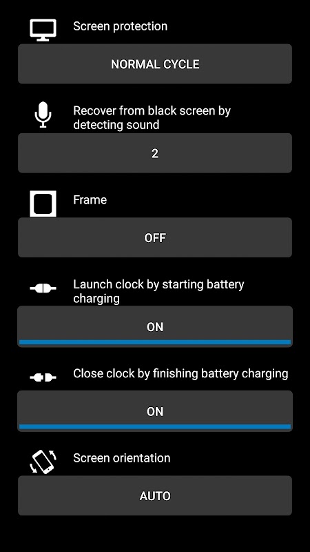 برای محافظت از OLED، این برنامه دارای عملکرد محافظ صفحه است.