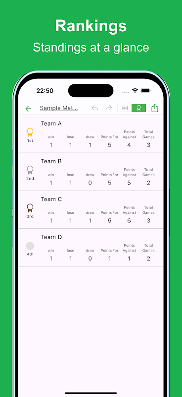 جدول مسابقه ساده برنامهای است که ساخت جدولهای مسابقه شفاف را از ثبت امتیاز تا مدیریت جدول ردهبندی برای شما ساده میکند。