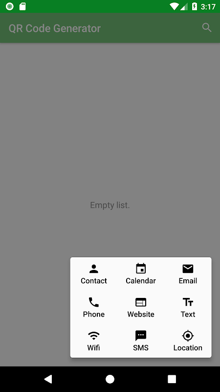- این می تواند کدهای QR بر اساس 9 نوع اطلاعات تولید کند: