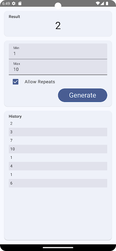 آیا تا به حال خواسته اید یک عدد تصادفی تولید کنید تا با یک رابط پیچیده و یک مجموعه ویژگی بزرگ اشتباه گرفته شود؟ Simple Random Number Generator تلاش می کند ساده باشد. ما می دانیم که اکثر افرادی که از برنامه ما استفاده می کنند فقط می خواهند بدون پیچیدگی اعداد تولید کنند.